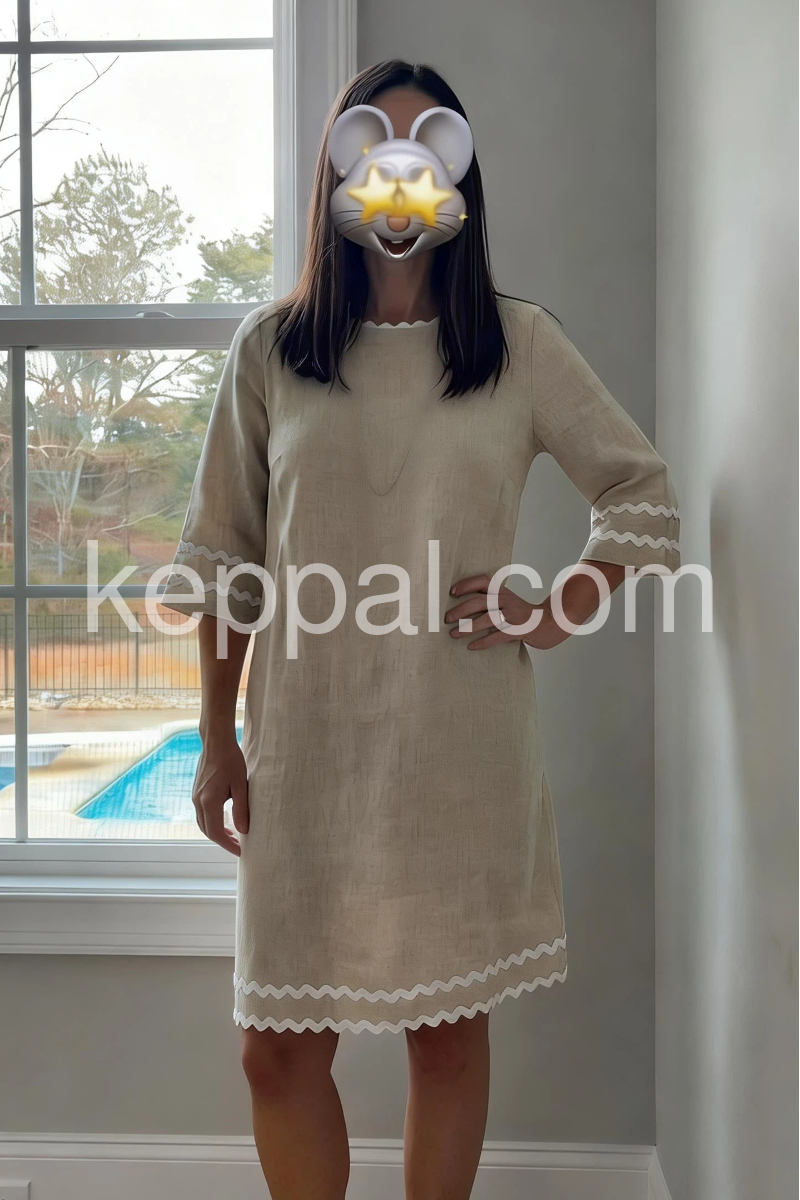 Baggy Linen Round Neck Midi Dress