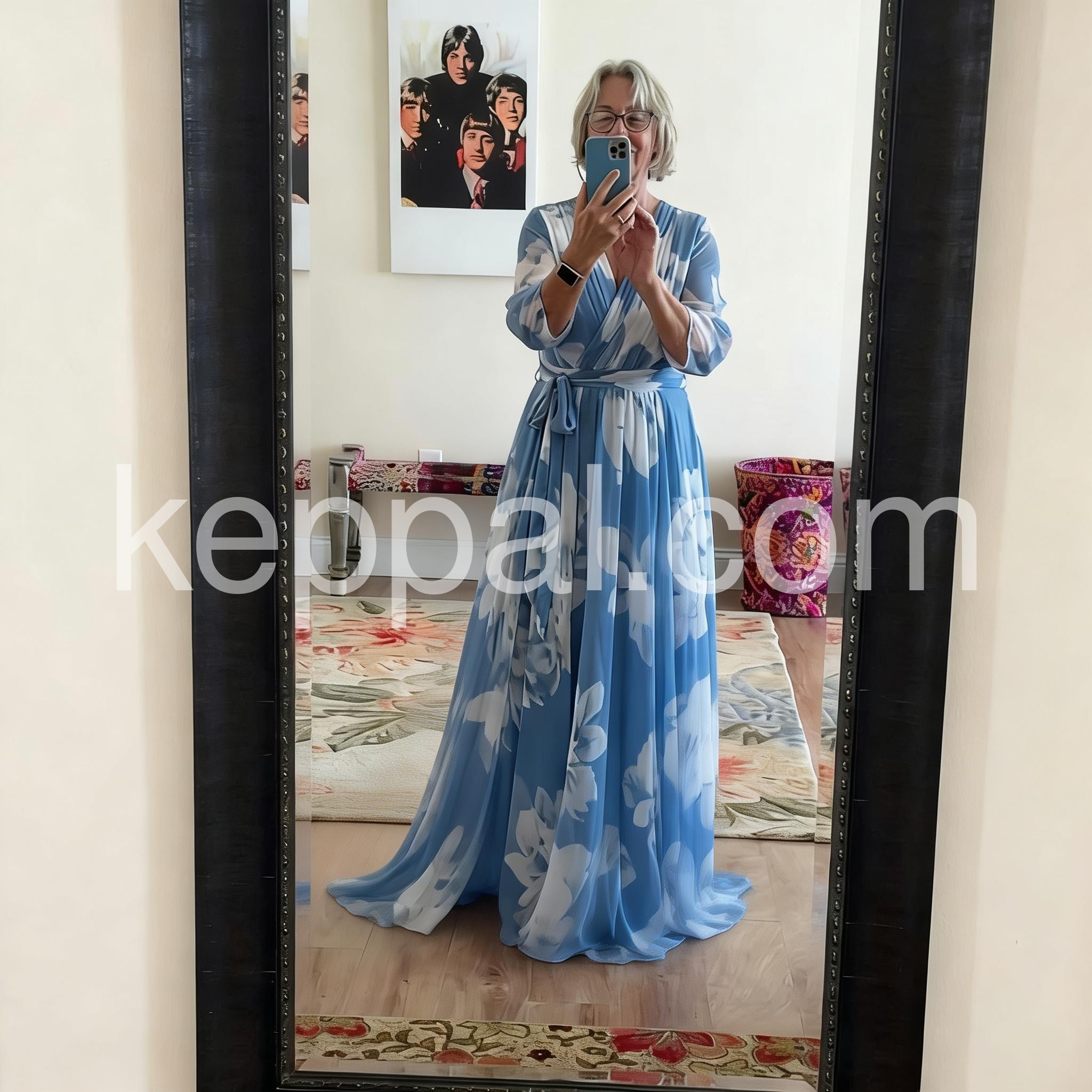 Youthful Blue V-Neck Maxi Dress