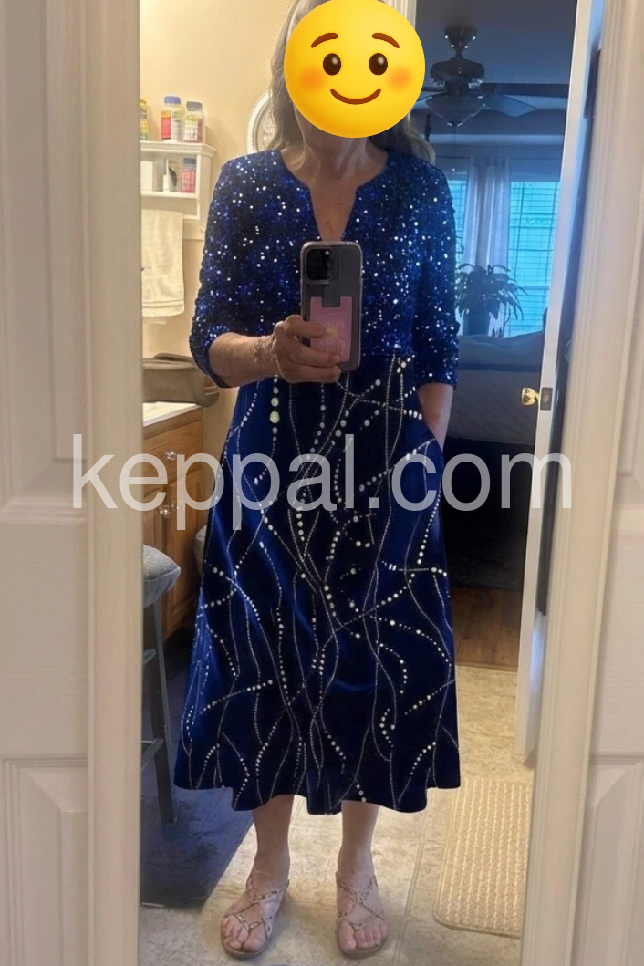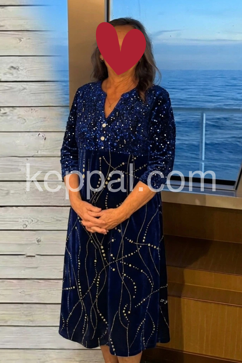 Midnight Blue Constellation Line Print Side Pocket Midi Dress