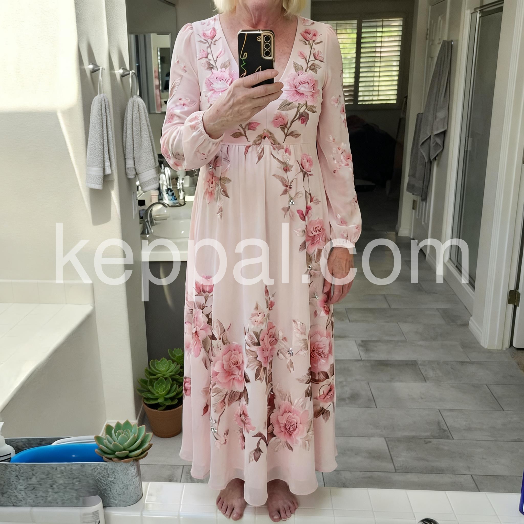 Romantic Long Sleeve Floral Print Maxi Dress