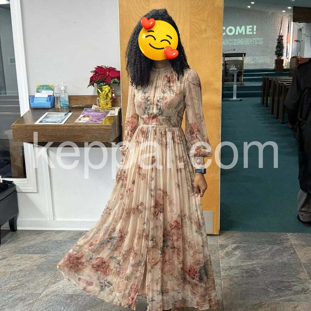 Vintage Floral Chiffon Long Sleeves Maxi Dress