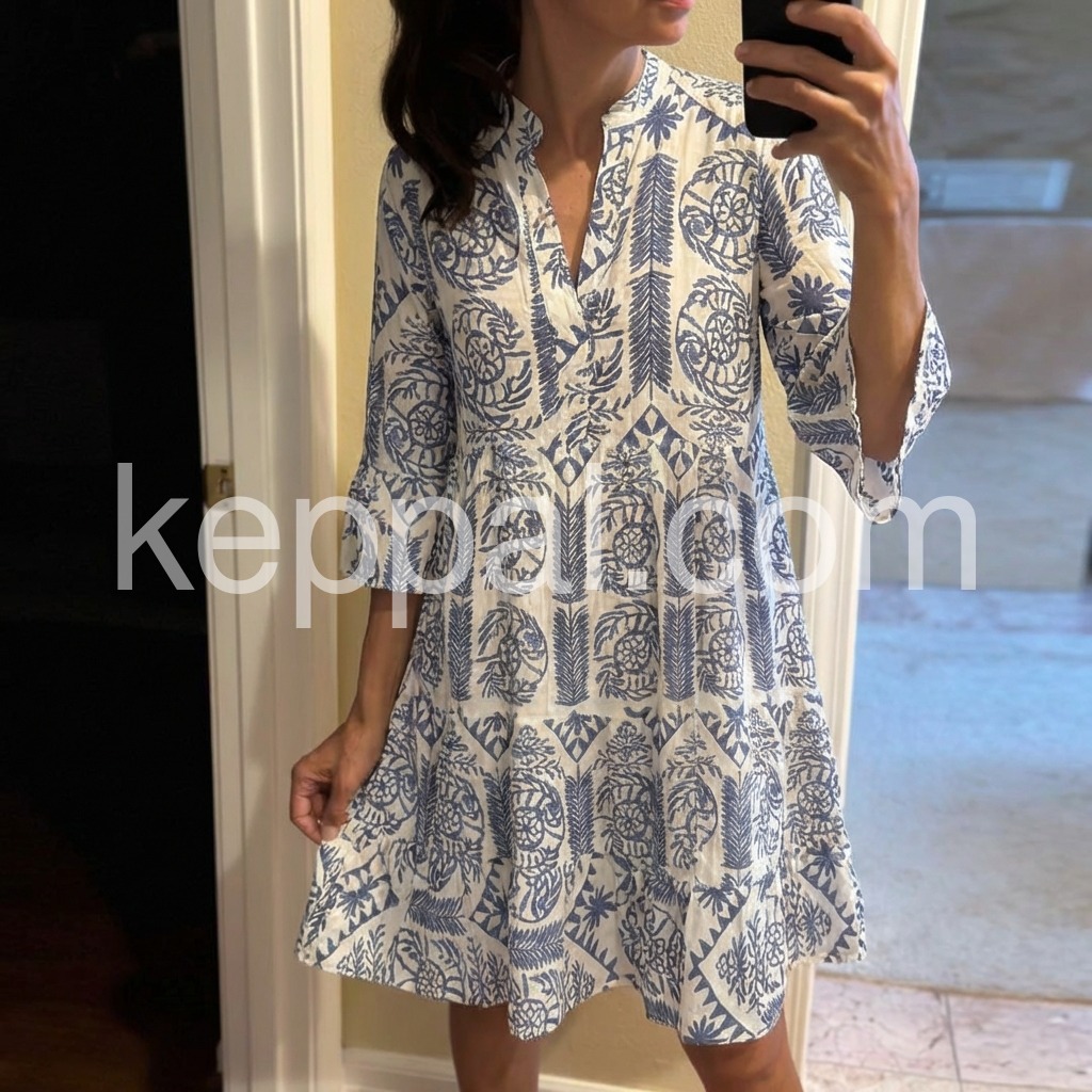 Blue V-Neck 3/4 Sleeve Mini Dress